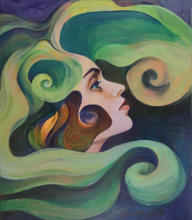 In my painting "Entering the Realm of Awe," I aimed to convey the essence of this experience through vibrant colors and swirling forms, capturing the very energy of creation itself. I want viewers to not just observe the art but to step into it—to feel the tension of the mystery that lies within and the awe that arises from it. This piece is not only an expressionistic representation but also an invitation to engage with the deeper mysteries of existence.